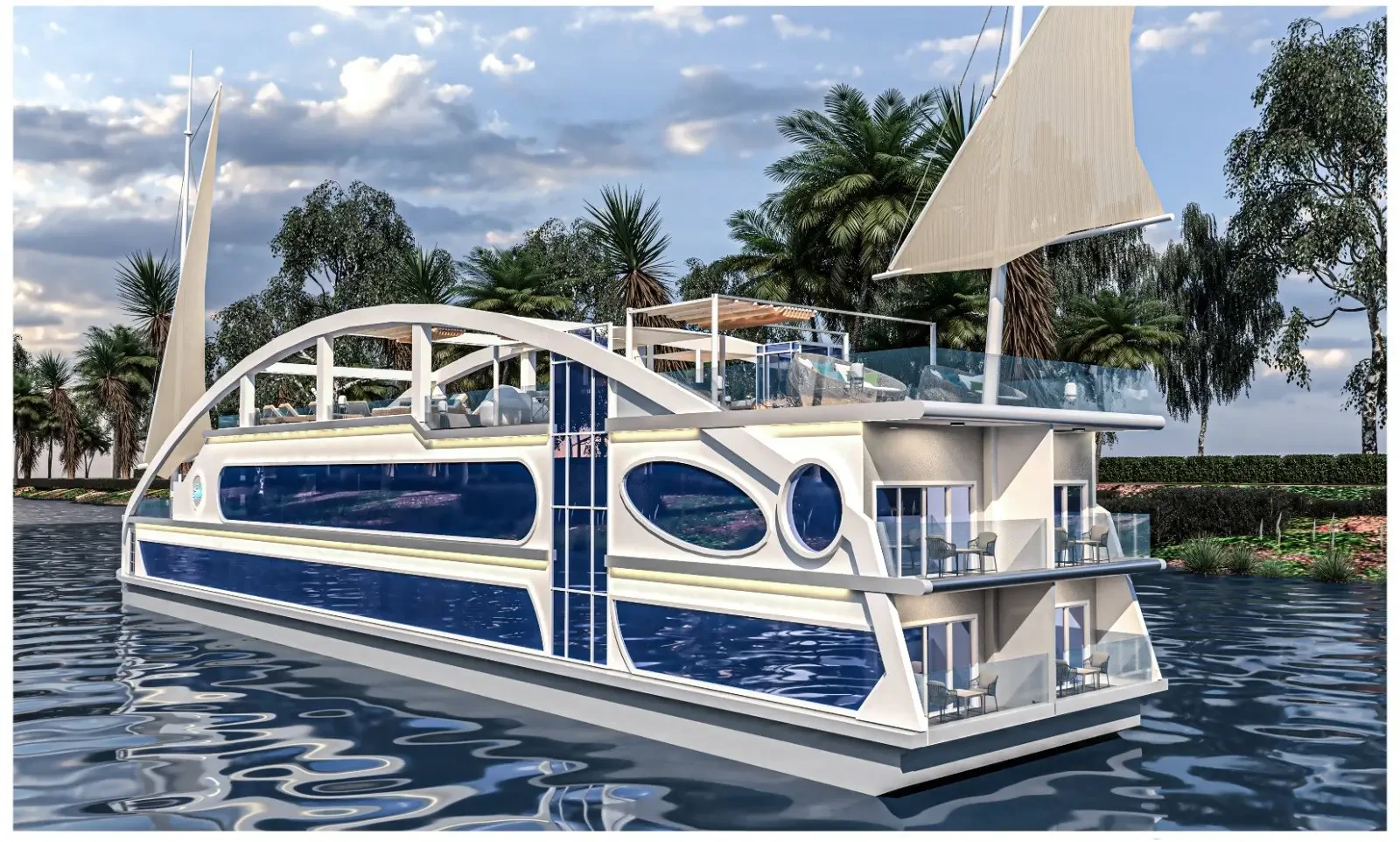 - Grandes fenêtres avec vue panoramique sur le Nil