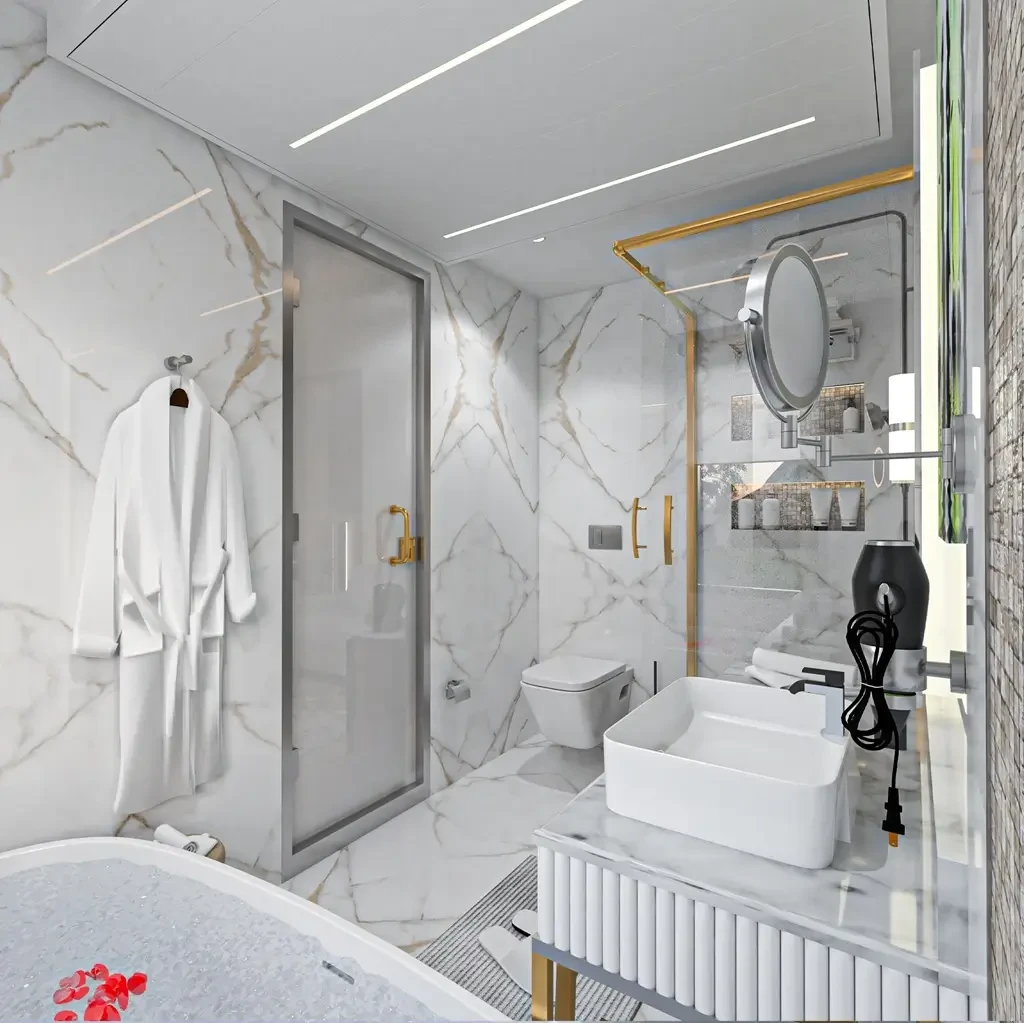 - Baignoire ou douche à l’italienne