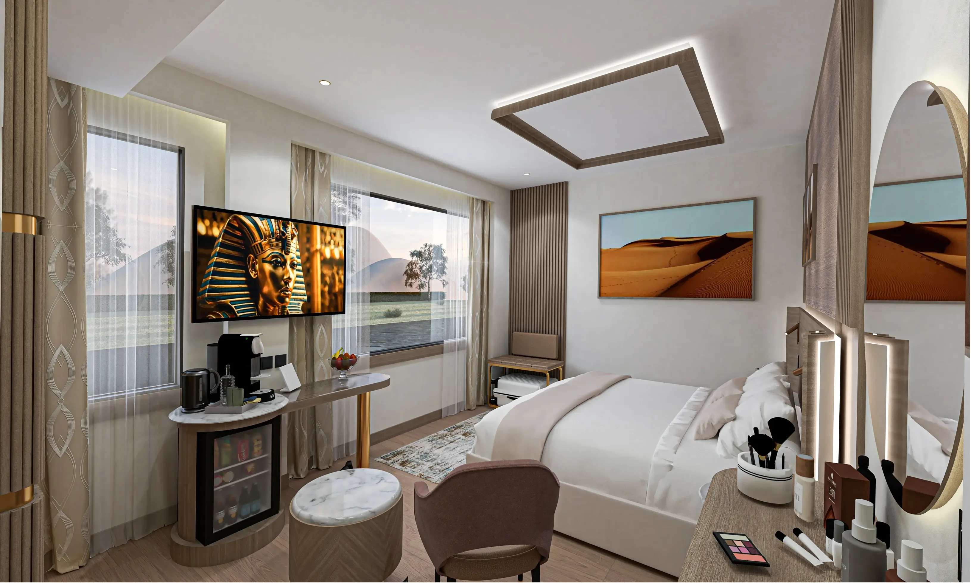 The Luxury Twin Bed Suite is designed for friends or family travelling together. Featuring two comfortable twin beds, contemporary interiors, and stunning Nile views, this suite offers both flexibility and style. It’s the ideal choice for guests who want comfort, luxury, and shared memories along the timeless Nile.